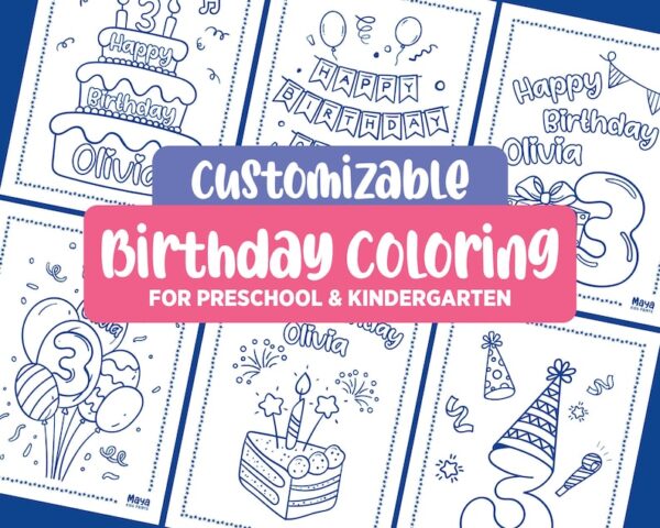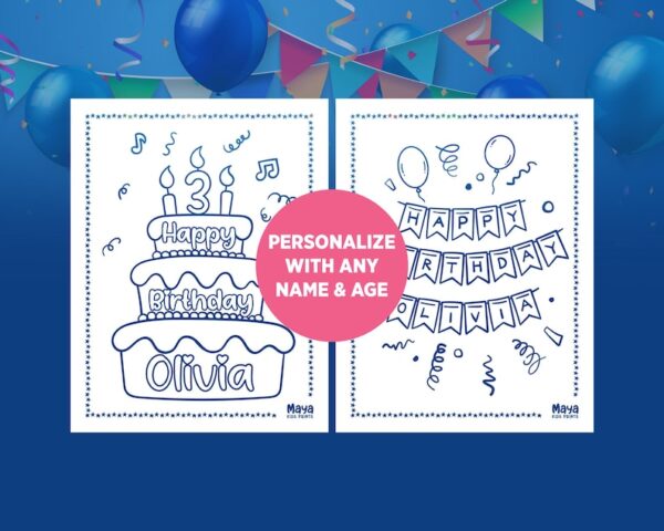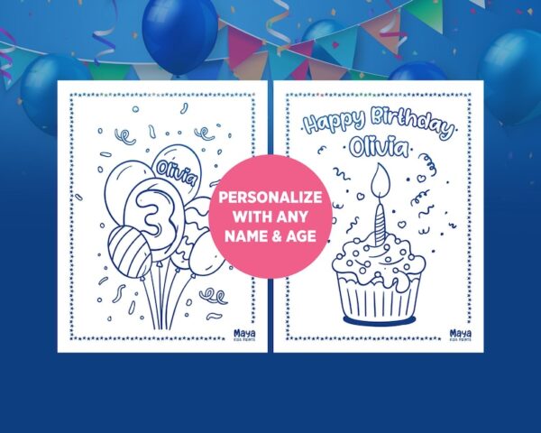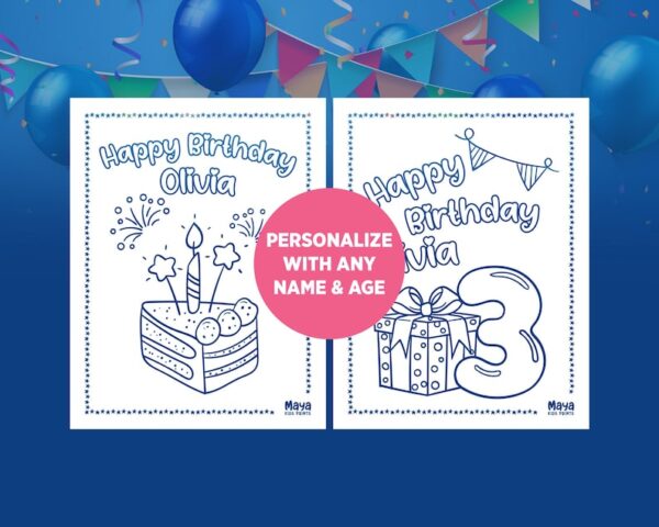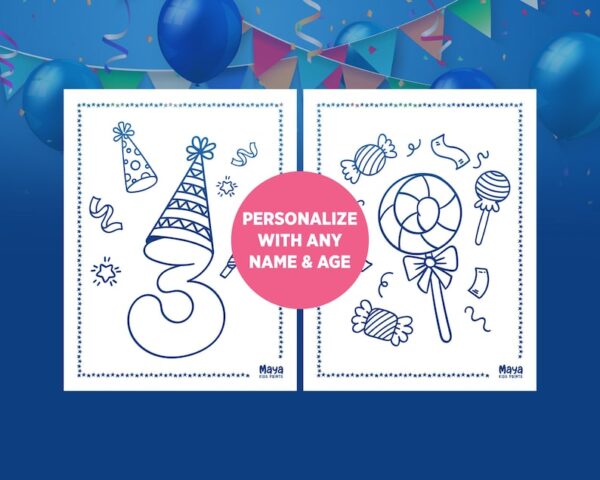 Birthday Colouring Pages, Customisable Colouring Book for Kids, Personalised Kids Birthday Party Activity Book.